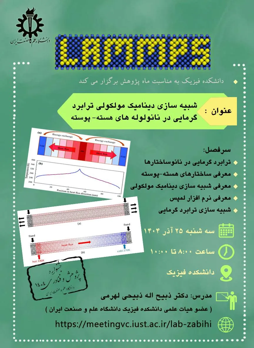 سمینارها و کنفرانسها شبیه سازی دینامیک مولکولی ترابرد گرمایی در نانو لوله های هسته – پوسته 22 آذر 1404 ارسال توسط Ms.zahirpoor 22 آذر